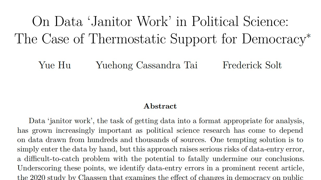 2025年2月28日,我系胡悦副教授应邀参加Data Harmonization Workshop,并作专题报告 On "janitor work" in political science: best practices for wrangling data before harmonization。 胡悦副教授的报告聚焦于政治学研究中的“数据清理”(data janitor work)这一关键环节。他指出,随着数字时代的到来,政治学研究愈发依赖来源复杂多元的数据,如何将原始数据整理为适合分析的格式已成为核心任务。手动录入数据虽然便捷,...