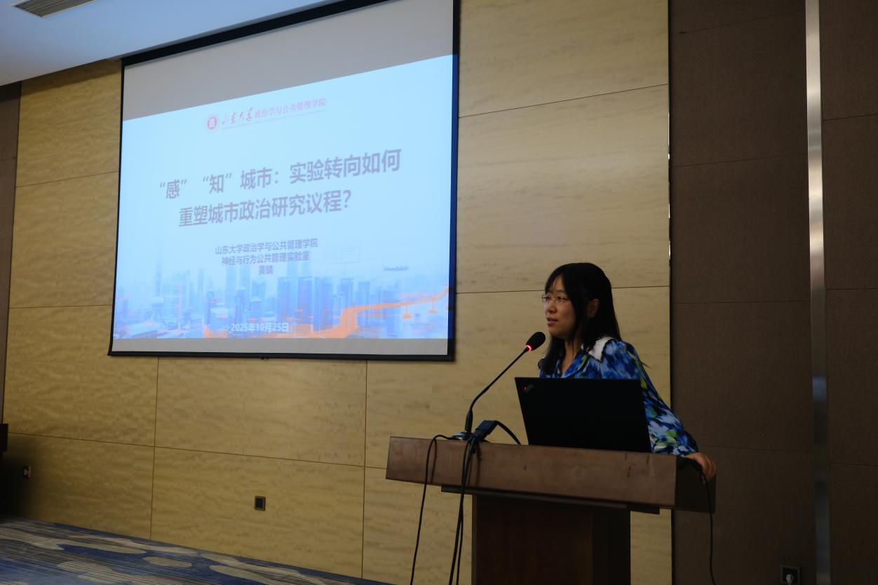 山东大学政治学与公共管理学院黄晴教授发表了题为《“感”“知”城市:实验转向如何重塑城市政治研究议程?》的演讲,她倡导城市研究的“实验转向”,通过VR、脑电、行为追踪等方法捕捉市民的具身体验,并在此基础上提出“感官正义”“身体政治”等概念,强调城市治理应关注市民的真实感受与生理反应。实验法不仅能打开政策黑箱,也能为无声群体提供表达渠道,推动城市治理走向人本与精准。