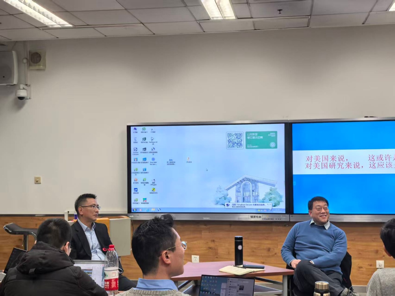 互动环节中,校内外硕博研究生围绕如何使用中国概念来解读美国政治、美国中期选举和2028年选举、驻外美军等理论和现实问题,与主讲人进行了交流。谢韬教授认为,对于美国政治的研究不但应该重视特朗普,还应该对美国政治的其他经典议题,例如种族、宗教、国会、司法等给予同等的重视。