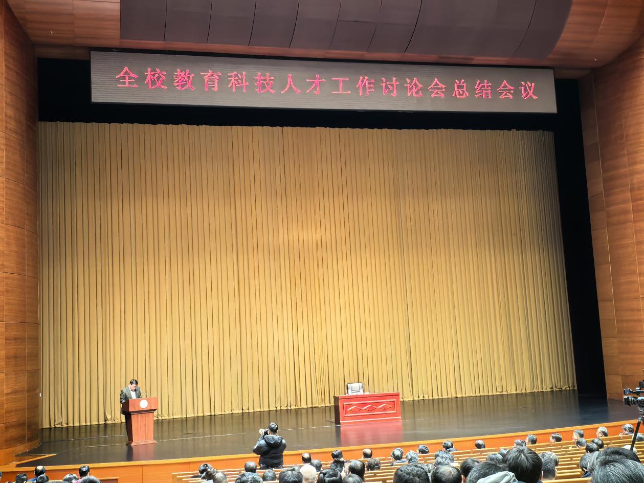 2025年12月12日,清华大学教育科技人才工作讨论会总结会议在新清华学堂举行。校党委书记邱勇作总结报告,校长李路明等校领导班子成员出席。校党委常务副书记向波涛主持会议。