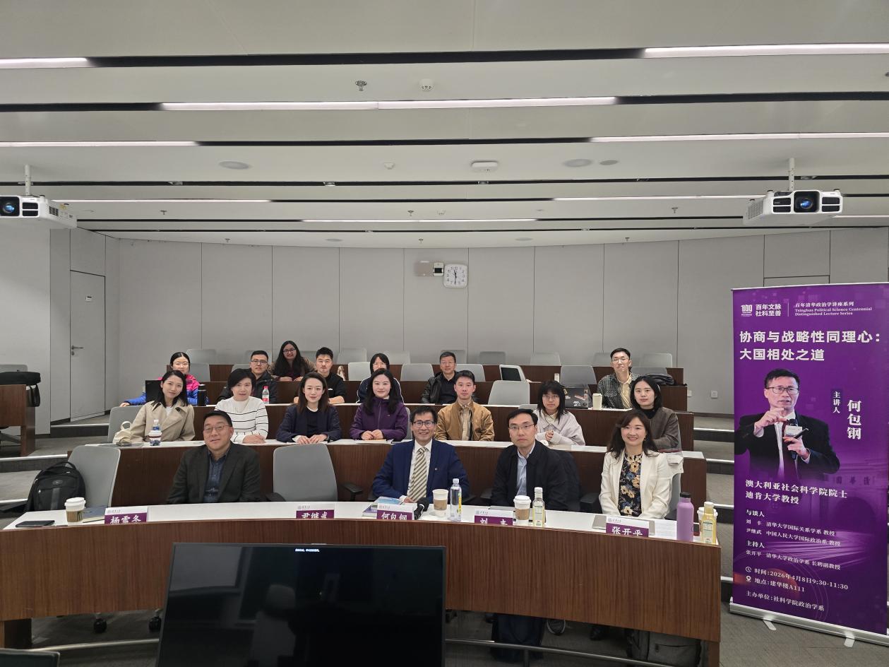 4月8日上午,澳大利亚社会科学院院士、迪肯大学讲席教授何包钢应清华大学政治学系邀请,以“协商与战略性同理心:大国相处之道”为题发表学术演讲。本次讲座是“百年清华政治学讲座系列”的重要部分,由张开平长聘副教授主持。清华大学国际关系学系教授刘丰、中国人民大学国际政治系教授尹继武担任与谈人,政治学系系主任杨雪冬教授出席并致辞。